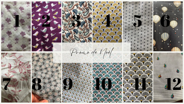 Nous choisirons ensemble le tissu parmi les coloris en promotion, et vous pourrez ajouter un fil ou une attache en laine assortie.
